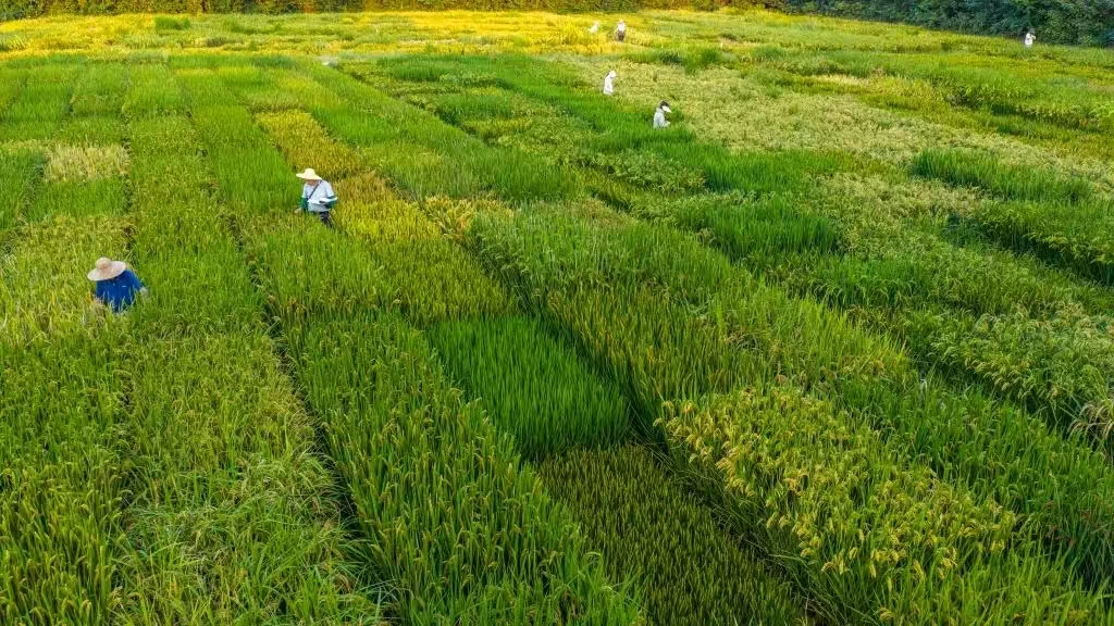 专家组查看水稻突变体田间长势