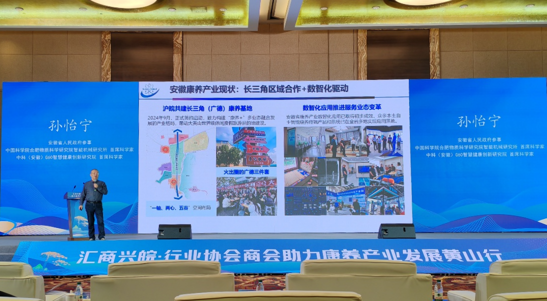 12月25日至26日,由安徽省委社会工作部与黄山市人民政府共同主办的“汇商兴皖·行业协会商会助力康养产业发展黄山行”活动在黄山市举行。省委社会工作部部长、省委“两新”工委书记陈韶光,黄山市委副书记、市长何毅出席活动并分别致辞。长三角现代服务业联盟负责人及长三角三省一市140余家康养领域重点行业协会商会及会员企业代表参加。中国科学院合肥物质院智能所首席科学家孙怡宁研究员作为特邀嘉宾出席活动。